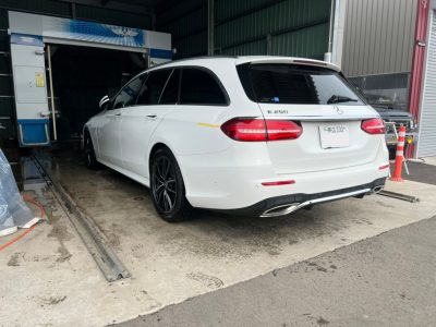 今回はメルセデスベンツEクラスのRフェンダーのへこみ修理を承りました。